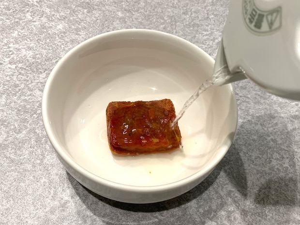 フリーズドライタイプのスープなので、熱湯を注いで完成させます。