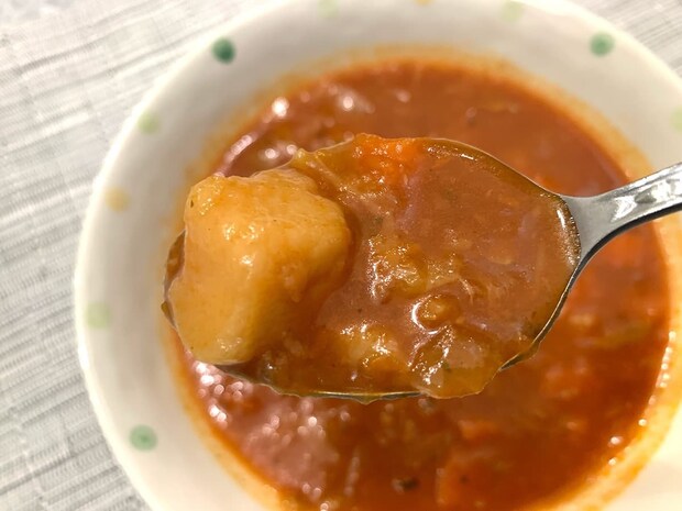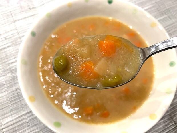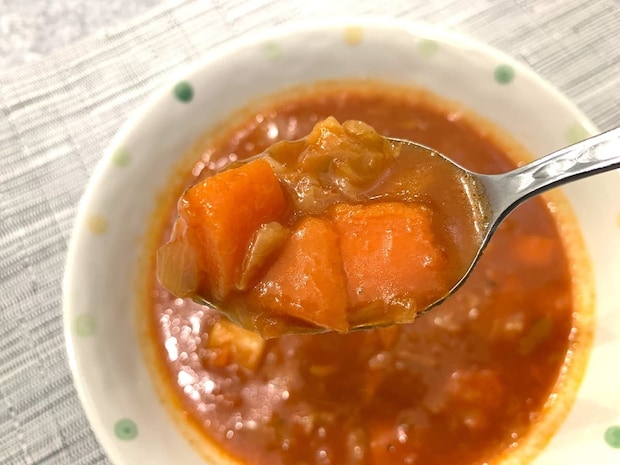 実食してみたところ、具材は全体的に柔らかく仕上がっており、子供でも高齢の方でも食べやすいです!少しとろみのあるスープで、野菜の旨味や甘味が溶け込んでいるのも高評価♪