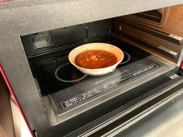 今回は温める方法に電子レンジを選択しました。湯煎よりすぐに温められるので、時短で調理を済ませたい方には電子レンジがおすすめです!