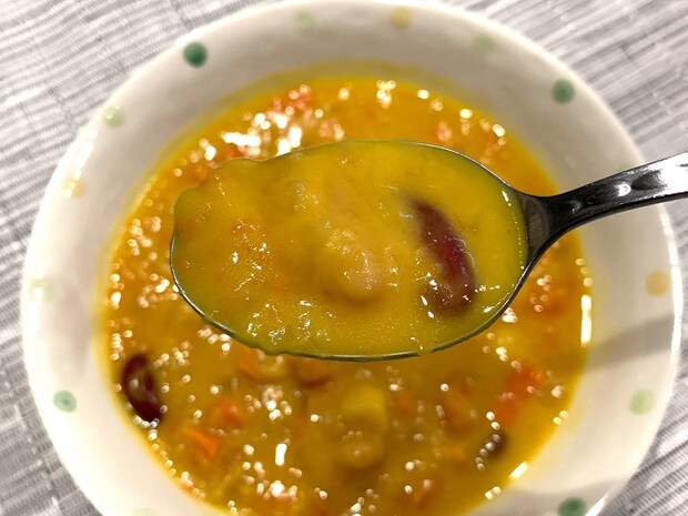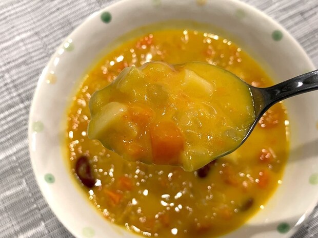かぼちゃの甘味もふんだんに効いており、自然な味わいが美味しい♪じゃがいもやいんげん豆のホクホク感も、違った食感を楽しめて絶品です!