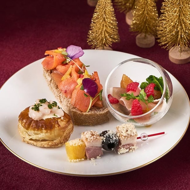 クリスマスツリーが飾られた華やかな空間で、ホリデーシーズンならではの特別な時間を楽しんでみてはいかが。