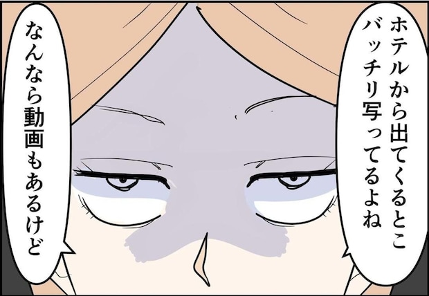 ホテルから女性職員と出てきた写真を邦夫に突きつけた佳奈さん。さっきまで高圧的だった邦夫は動揺します。