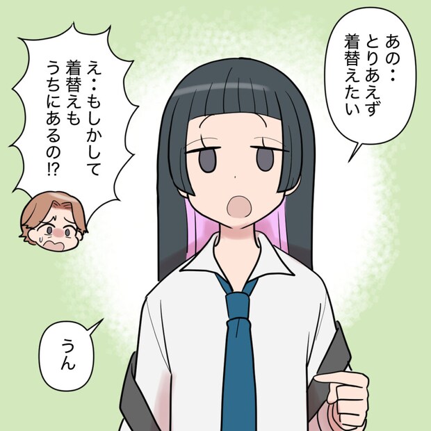 こんな状況にもかかわらず、エリカちゃんは「あの・・・とりあえず着替えたい」と言い出しました。息子の部屋に既に着替えも置いてあることにまた驚きです。