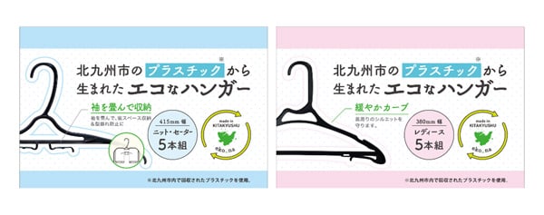 北九州市民が提供したプラスティックから生まれた「エコなハンガー」を利用して、環境問題についても意識してみては。