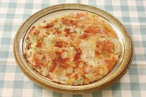 焼いたあと、生地がもちもちとして切り分けにくい時は、キッチンばさみを使うと切りやすいですよ。