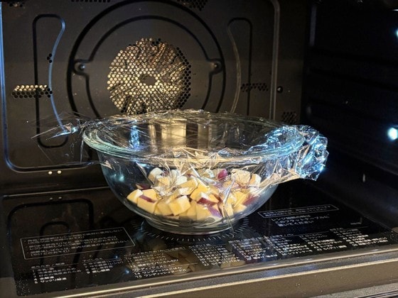2. 水を捨て、電子レンジ(500W)で約4分加熱します。