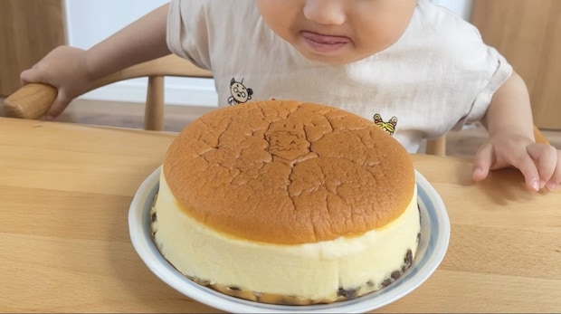 ふわふわのチーズケーキを目の前に、食べるのを我慢する息子さんはとっても愛らしい表情をしていたそうで・・・?
