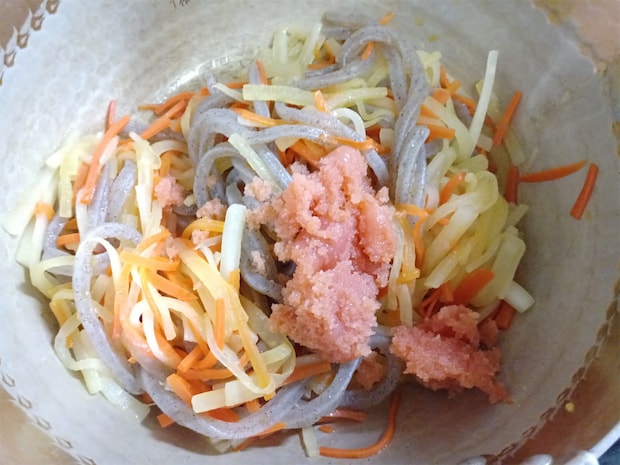 辛子明太子のピリっとした辛味に大根の瑞々しさ&にんじんの甘味が引き立っています。