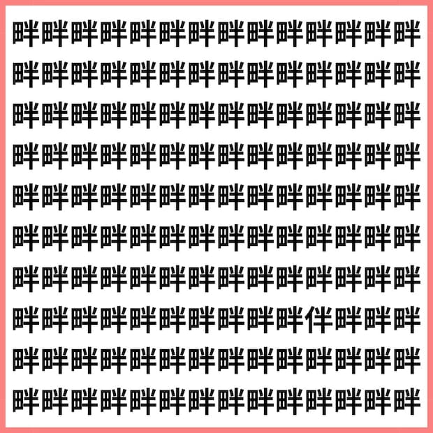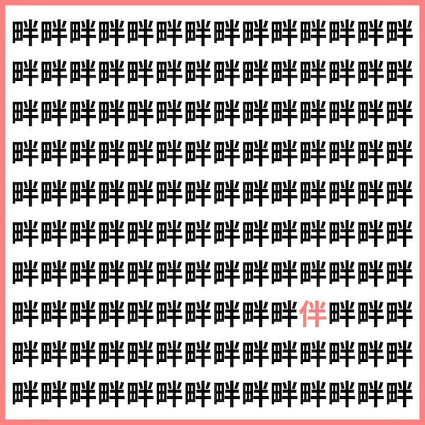 たくさんの「畔」の中に、1文字だけ違う漢字が混ざっています。