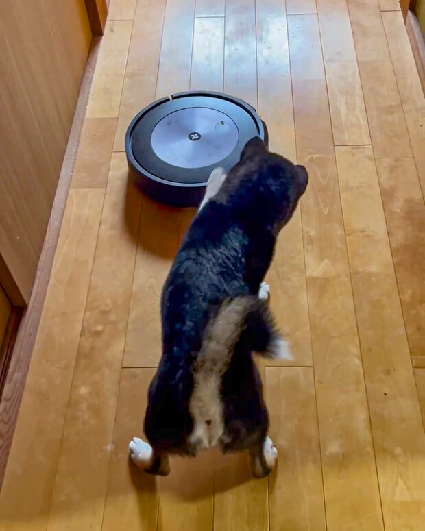 「頑張れあんこ!」と応援しながら見ているという飼い主さんですが、ロボット掃除機にはしっかり掃除をしてもらいたいですよね…