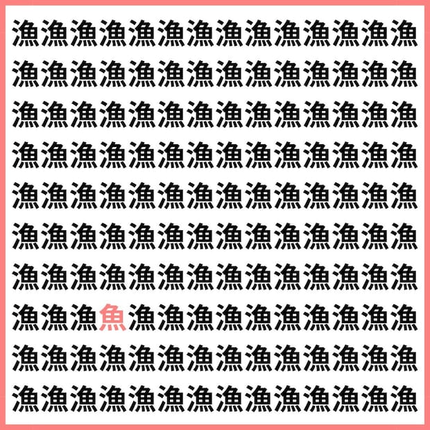 たくさんの「漁」の中に、1文字だけ違う漢字が混ざっています。