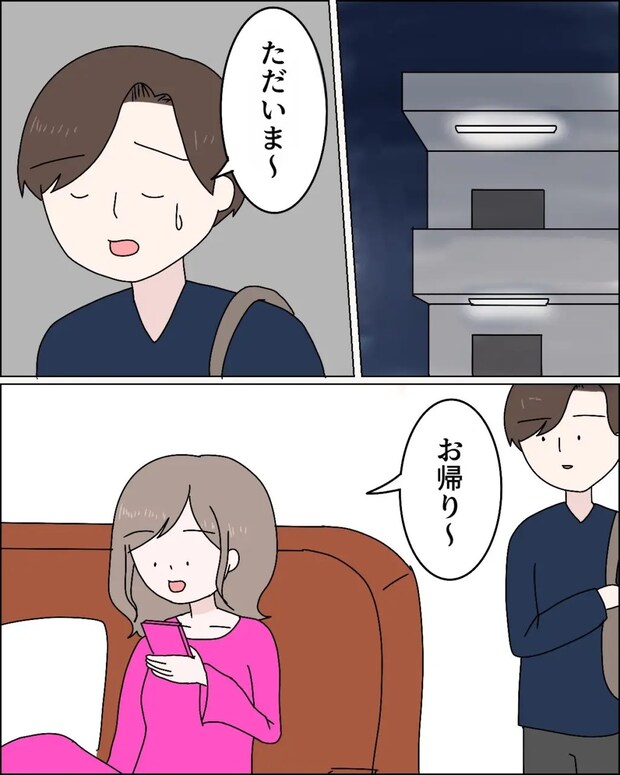 「ただいま~」疲れて家に帰ったケイさんに、「お帰り~」とソファに座り、スマホから目も離さずにエリカさんが言いました。