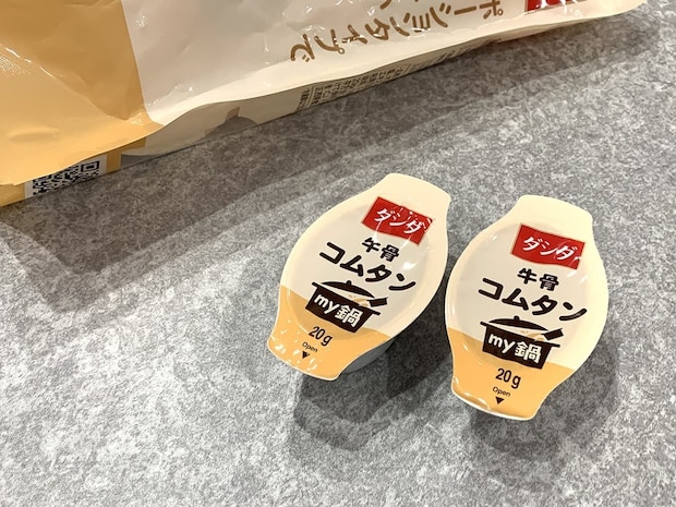袋を開けてみると、手で持ちやすいポーションがたっぷり入っていました!牛骨を8時間以上じっくり煮込んで作られたスープとのことで、旨味が溶け出したスープへの期待が高まります♪