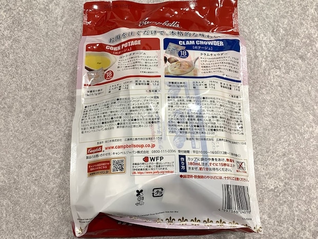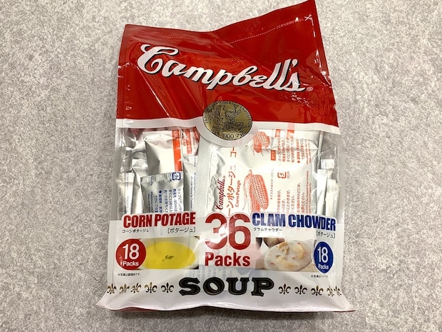 コーンポタージュとクラムチャウダーがセットになった「キャンベル インスタントスープ アソート」をご紹介します。