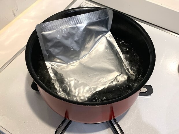 調理する際はパウチのまま熱湯で5~7分湯煎するか、耐熱容器にスープを移して電子レンジで温めます。