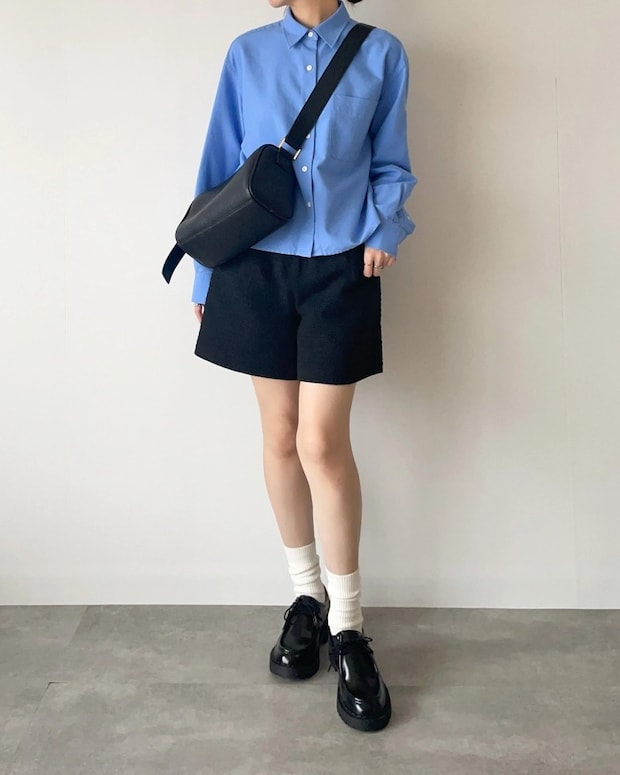 ツヤと厚めのソールが重厚感を醸し出し、高見え感のあるレースアップシューズ。足元に高級感をプラスしてくれるので、いつものコーデを格上げするのにぴったりなアイテムです。無地のシャツとハーフパンツというシンプルなコーディネートも、レースアップシューズを合わせればぐっと品のある印象に。白ソックス合わせにすると、こなれ感も出せて素敵ですね♡