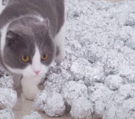 飼い主さんは床一面にアルミボールを作って敷き詰めました!!