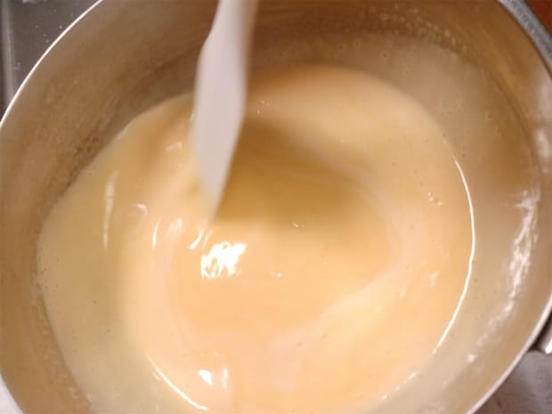 シリコンベラで絶えず混ぜて混ぜて~。よそ見は厳禁ですよ!