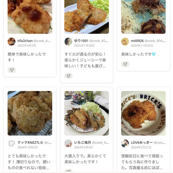 レシピでは、洗い物を減らすためのちょっとしたコツも紹介されていて、忙しい中で日々の料理を頑張る人にとってはありがたい情報が盛りだくさん。大葉やチーズをはさんだというつくれぽもありました。冷蔵庫にストックしていることが多い豚バラ肉ですが、今夜はちょっと豪華に時短のトンカツを作ってみませんか?(TEXT:青木千奈)