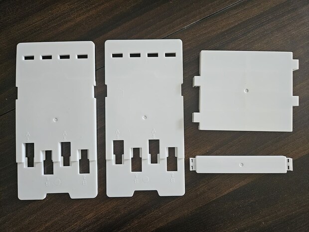 湾曲型のパーツを底面と背面側にあたる細長い穴にそれぞれ差し込み、すべての箇所に付属の輪ゴムを使って固定していきます!