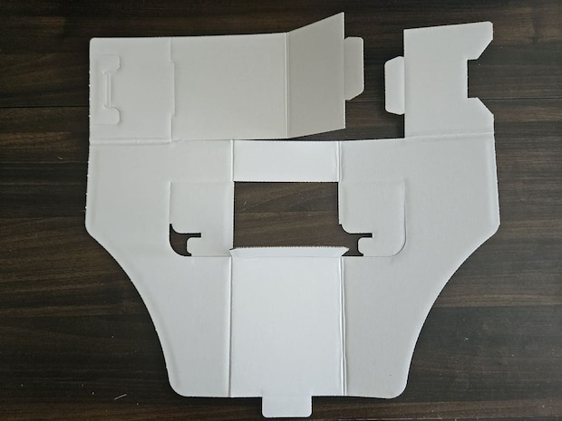 紙だけで組み立てますが、1枚がすべてつながった状態で折ったり差し込んだりするだけです。ハサミやテープなどは不要!