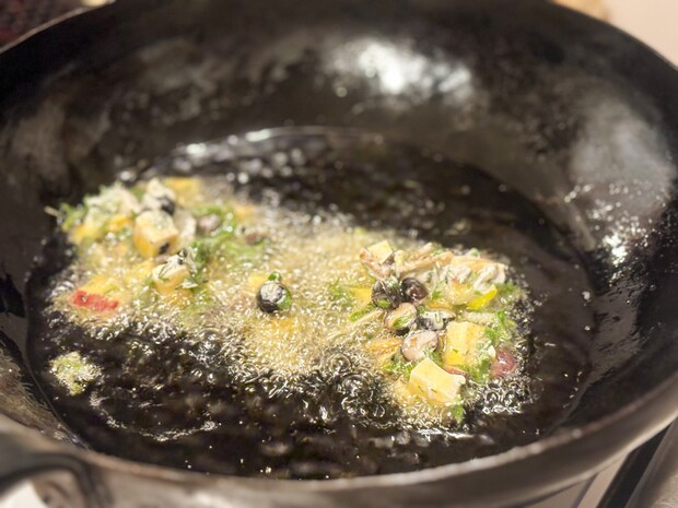 我が家には、その後購入した南部鉄器の分厚くて重たいすき焼き鍋もあるんですが、それはお好み焼きや餃子など、鍋を振る必要がない時によく使います。家庭で気軽に使えるように薄くしてあるという河原崎さんのフライパンは、炒め物や揚げ物に大活躍。