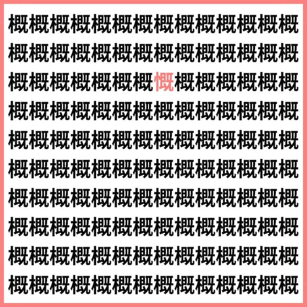 たくさんの「概」の中に、1文字だけ違う漢字が混ざっています。