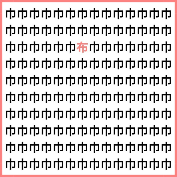たくさんの「巾」の中に、1文字だけ違う漢字が混ざっています。