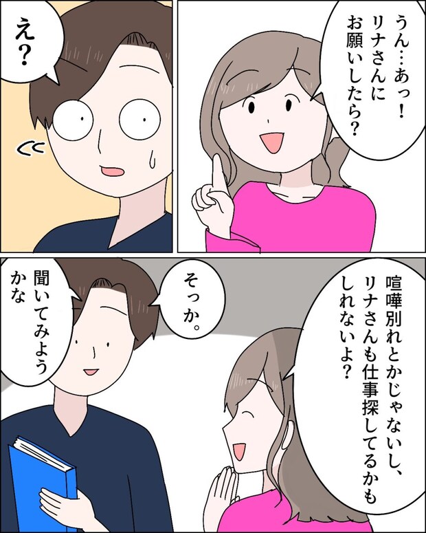 「喧嘩別れとかじゃないし、リナさんも仕事探してるかもしれないよ?」エリカさんにそう言われ、「そっか。聞いてみようかな」とその気になるケイさん。