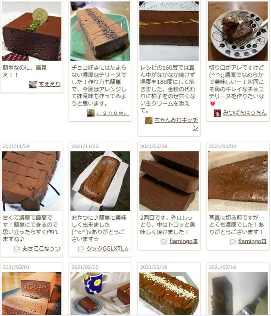 つくれぽ(作りましたフォトレポートのこと)にも、「真ん中がトロっとして最高でした」「濃厚でしっとりした大人の味わいに感動」「簡単なのにおしゃれ」など、実際に作った人たちも大絶賛!