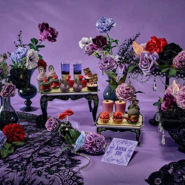 世界中で愛され続けるニューヨーク発のファッションブランド「ANNA SUI(アナ スイ)」との初コラボレーション! 「ANNA SUI」のブランドのシグネチャーカラーであるパープルを取り入れたマフィンやゼリー、蝶のモチーフや色鮮やかなバラが目を惹くムースなど、ファンタジーでロマンティックなスイーツがスタンドを彩る。セイボリーは、見た目もかわいらしい黒猫のバーガーや、秋の味わいを楽しめるスープやタルトなどがラインナップ。