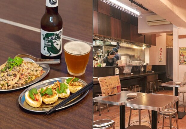 「揚げタマゴ」530円、「豚ラープ」740円、「チャラワンペールエール」900円。パンチが効いた本場流イサーン料理を味わえる貴重な店。神泉駅前のランドマーク的存在。人通りの少ない円山町にありつつ、開店直後から続々とお客さんが。気取らない雰囲気で入りやすい