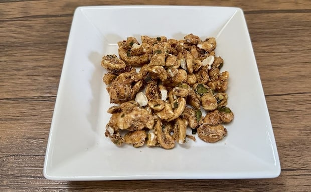 ほんのりチーズ味のクルトンとフリーズドライチーズが良いアクセントになり、シンプルなアーモンドと、黒胡椒がしっかり効いたカシューナッツの対比も楽しめます。