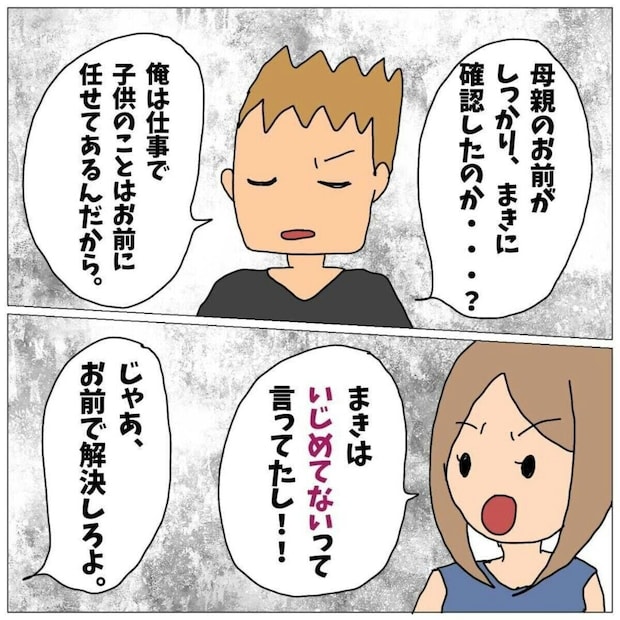 相談をすると「内容証明を送ってみるか」と冷静な判断をするパパ。送付すると学校はいじめの調査をして内容証明を返信してくれましたが、ときを同じくして怒鳴りこんでくるまきちゃんのママパパ。しかしパパは毅然(きぜん)とした態度で立ち向かいます。