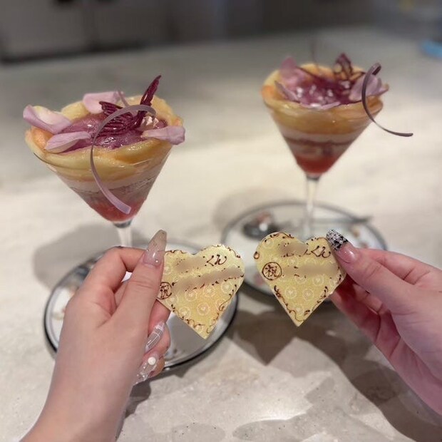 3000円台のミニパフェが、ミニとは思えないボリューム&クオリティ! プレートがハートの形なのもかわいいです。