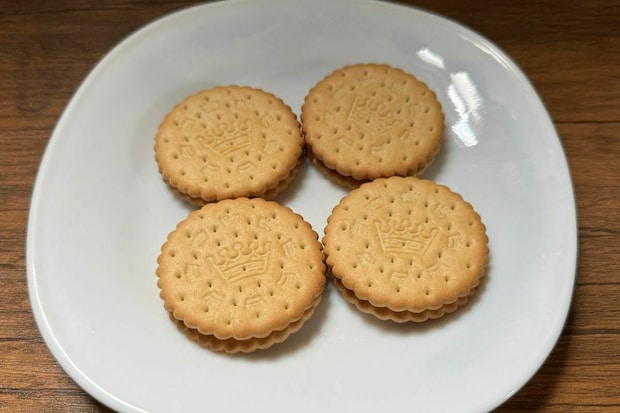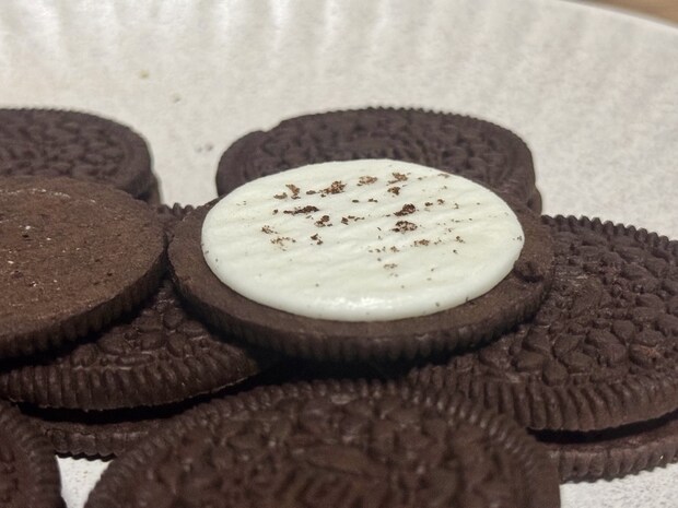 ビスケットは大きめでサクサクとした食感、そして塩気が効いています。一方、中のバニラクリームはクリーミーで、しっかりとした甘さ。