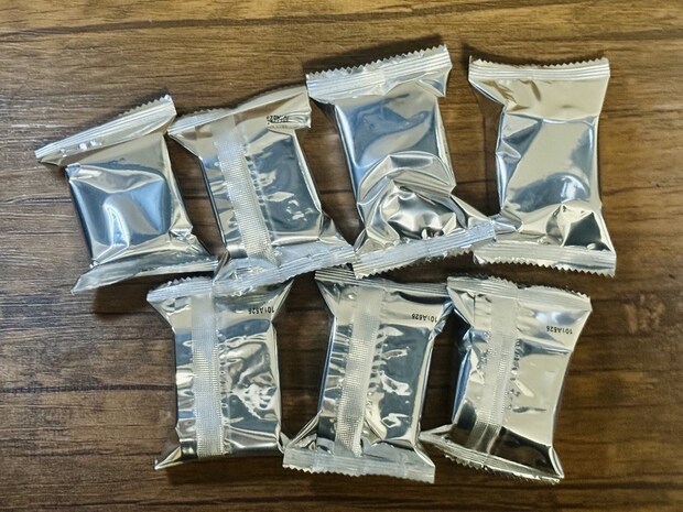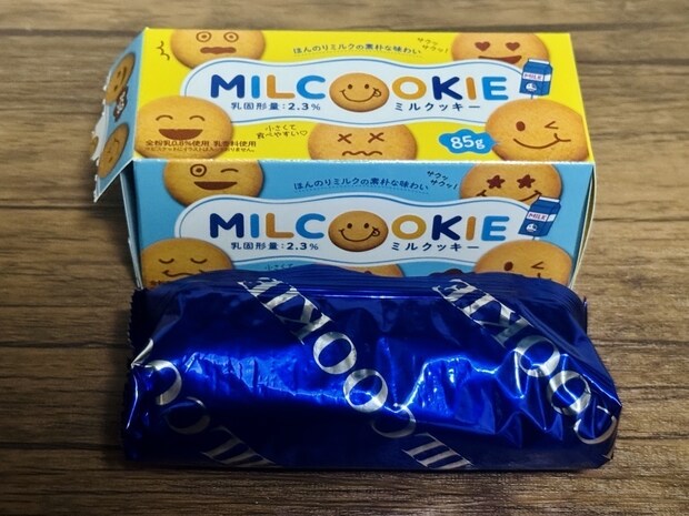 箱の中には、同国産の「ミルクッキー」と似た筒状の袋が入っていました。