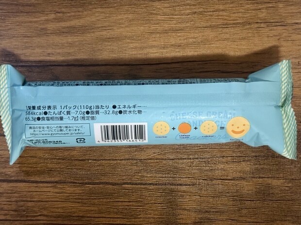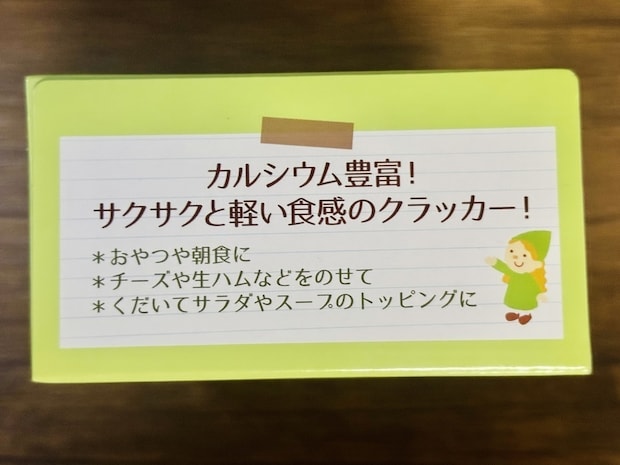 パッケージの裏面には、「クラッカー + チーズクリーム + クラッカー = yummy!!」と可愛いイラストを添えて描かれていて、何だかほっこりしますね♪