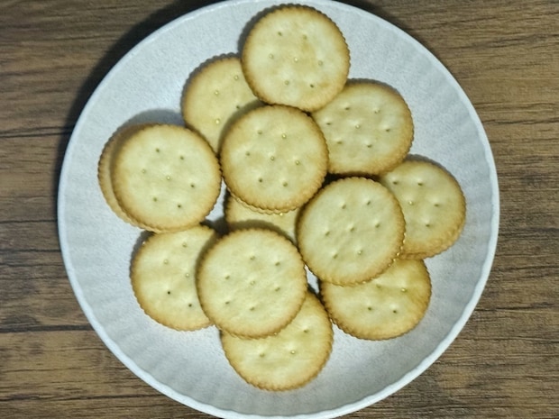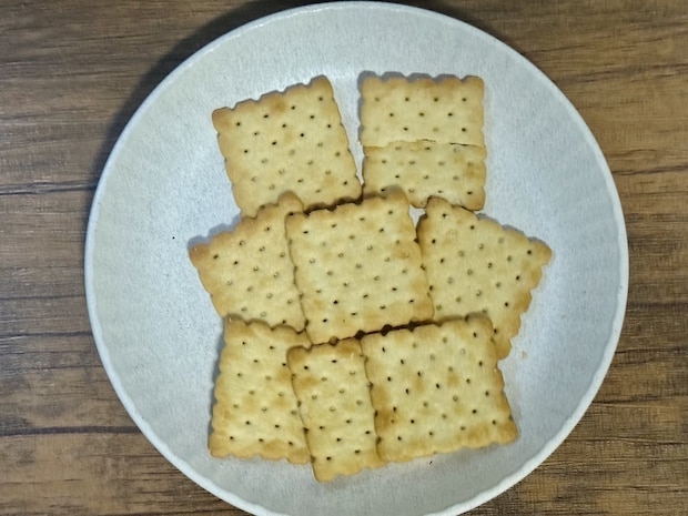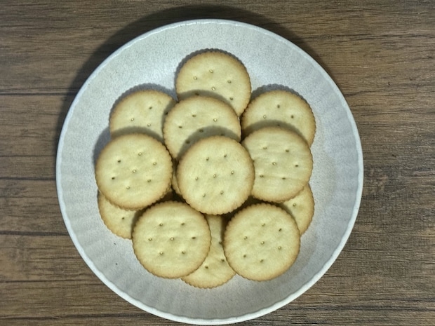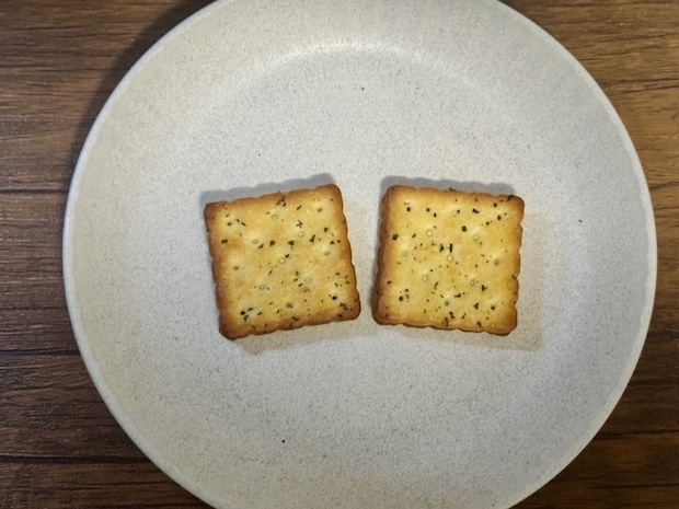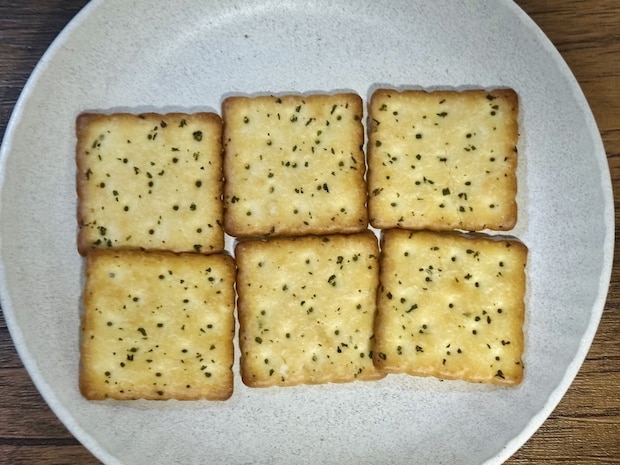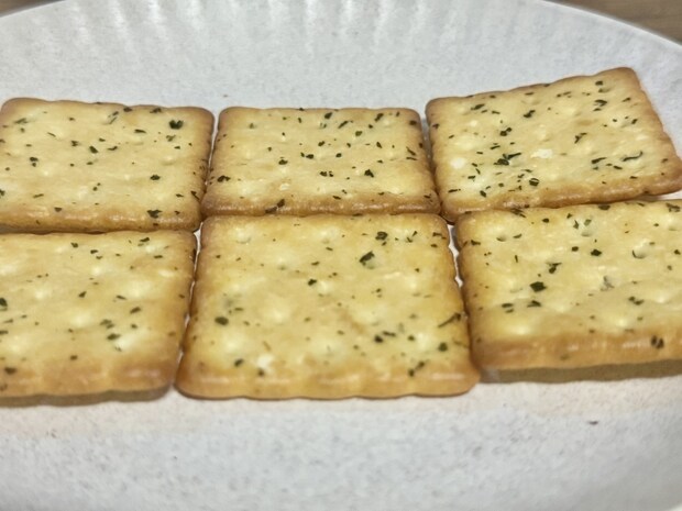 1袋に6枚、合計で30枚のクラッカーが入っています。開封すると、バターのような素朴で甘い香りがします。