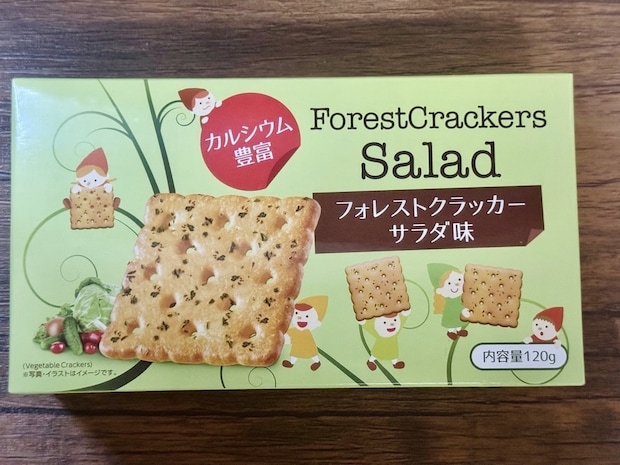 可愛らしい小人のイラストが描かれたパッケージが特徴の、マレーシア産「フォレストクラッカー サラダ味」。