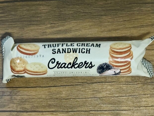 トリュフ風味のクリームを、サクサクとした食感のクラッカーでサンドした一品です。