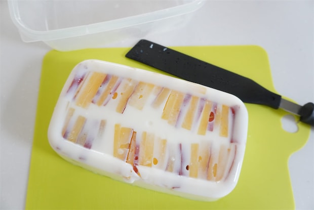 わが家には流し缶がないため、大きめの保存容器で代用しました。