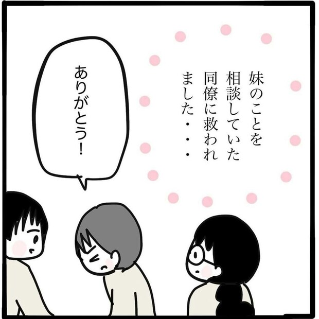 急な残業を頼まれ、困ってしまった兄・豊さん。すると、苗さんの事情を知る同僚が代わりに引き受けてくれたおかげで、苗さんに会いに行くことができました。家族の事情をあまり大事にしたくはなくても、誰か信頼できる人には打ち明けておくと安心ですよね。