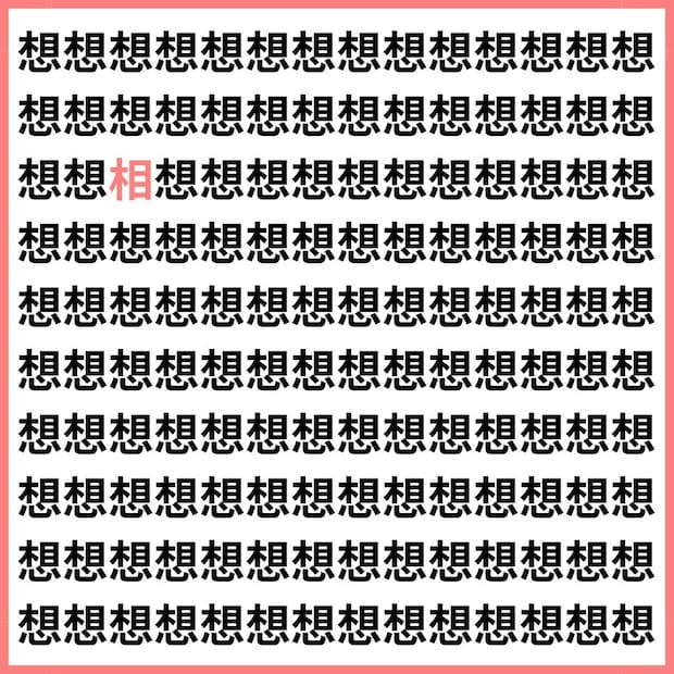 たくさんの「想」の中に、1文字だけ違う漢字が混ざっています。