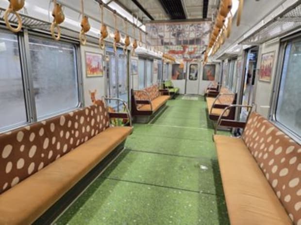 この投稿には「つり革かわいい」「これ偶然乗りました!床まで芝模様でめっちゃメルヘン」などのリプライが寄せられていました。