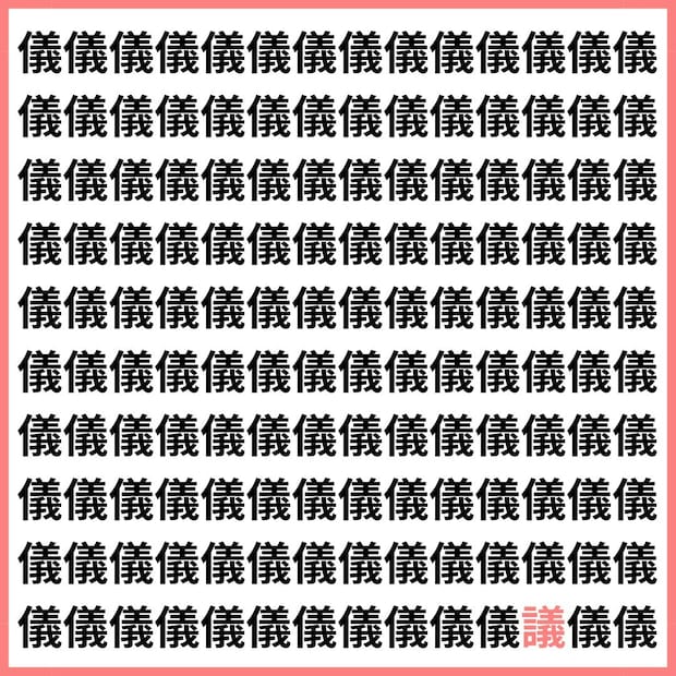 たくさんの「儀」の中に、1文字だけ違う漢字が混ざっています。