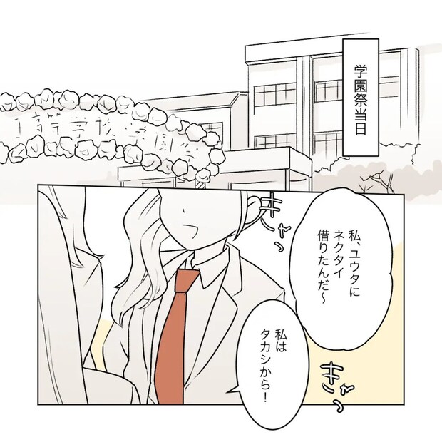 学園祭当日。高校内で流行っている、女子が男子のネクタイを借りる話で盛り上がっていました。気になる相手に声をかけるチャンスなので、学園祭のこの風習で付き合うカップルが多いのです。