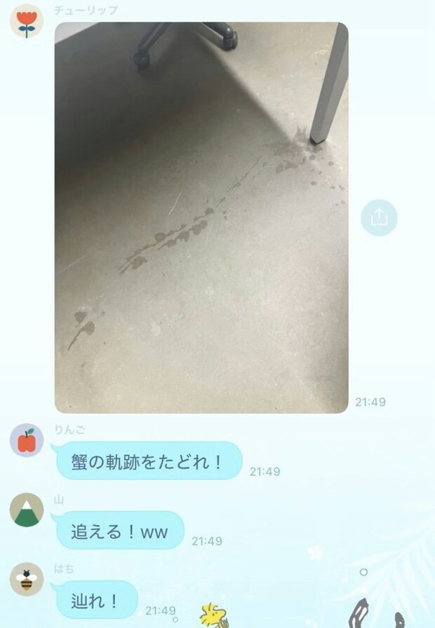 研究室の蟹が脱走して、蟹の足跡を追跡してたのお笑いすぎる