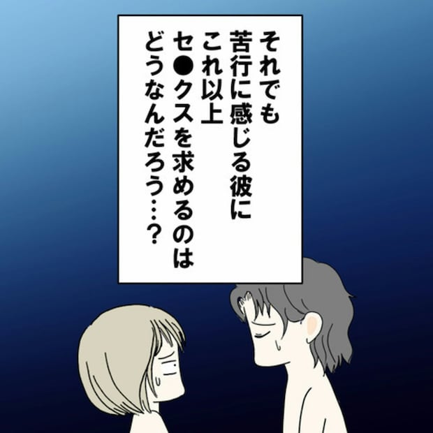 S葉さんは、彼氏・E原さんの膣内射精障害を改善させようとさまざまな試みをしていました。しかし、カレには改善どころかセックスは苦行だと言われてしまい、これ以上どうすればいいのかとまた悩んでしまいます。