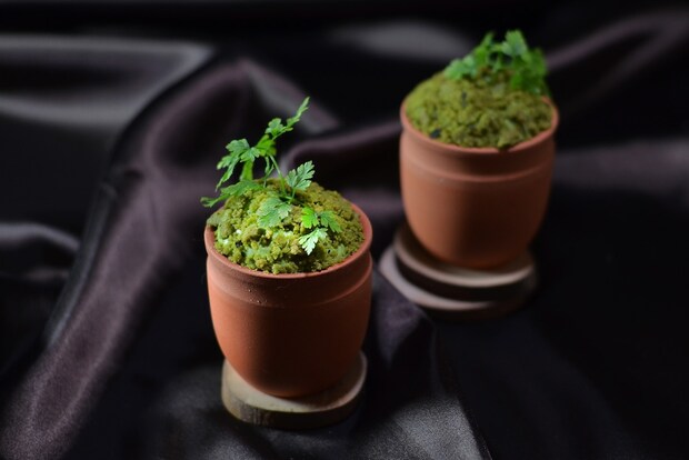 和菓子専門店「美栗舎(みくりや)」に登場する「箱庭けーき」は、苔を模した、陶器に入った抹茶の和風ケーキ。中は抹茶プリンと小倉ムースが層になっており、食べ進めるごとに新しい味わいが。食べ終わった容器は、持ち帰って小物入れなどにできる。
